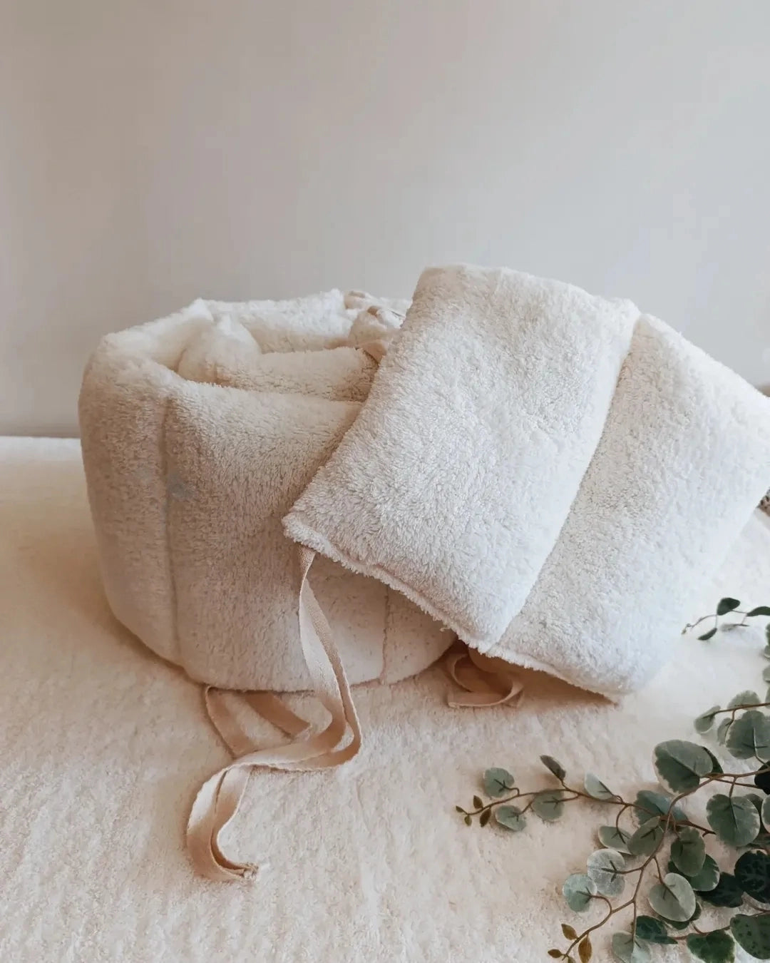 Disponible en color crema, es el complemento perfecto para crear un entorno de sueño seguro y reconfortante. Protector de cuna acolchado de borreguito, suave, seguro, ideal para la cuna del bebé.